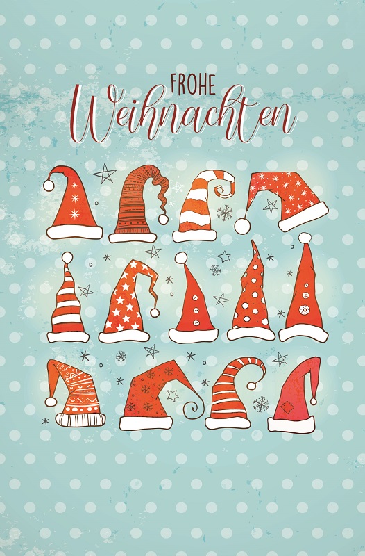 Weihnachts-Grußkarten ca. 11,5 x 17cm 8/s mit farbenfrohen aber eher schlichten Motiven, im Polybeutel