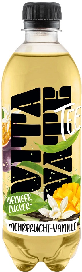 VitaVate TEE MEHRFRUCHT-VANILLE echter Tee direkt gebrüht und weniger Zucker 500ml (DPG Einwegpfand/Pfanddose) im 18er Pack