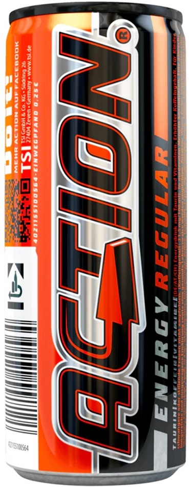 Action Energy Drink Regular 250ml (DPG Einwegpfand/Pfanddose) im 24er Tray