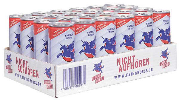 Flying Horse/Einhorn Energy Drink Koffeinhaltiges mit Taurin 250ml(DPG Einwegpfand/Pfanddose) im 24er Tray