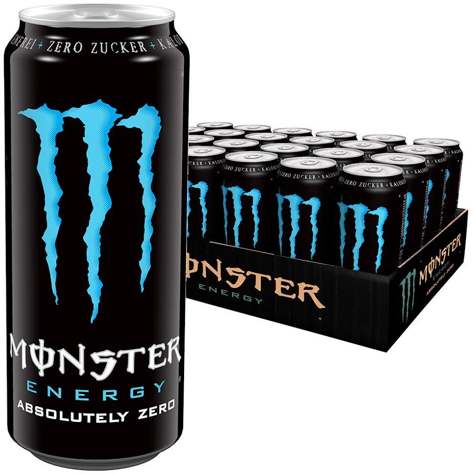 Monster Absolutely Zero 500ml mit Taurin Koffeinhaltiges Erfrischungsgetränk (DPG Einwegpfand/Pfanddose) im 12er Tray