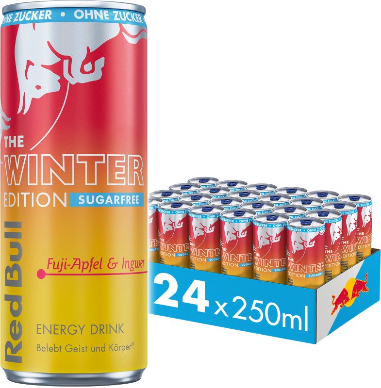 Red Bull The Winter Edition 2025 Sugarfree Fuji-Apfel & Ingwer Energy Drink 250ml (DPG Einwegpfand/Pfanddose) im 24er Tray