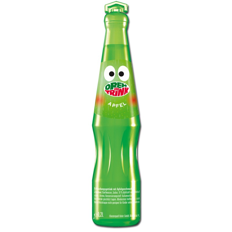 Dreh und Trink Apfel Geschmack In Kunststoff-Flasche mit Drehverschluss. 200ml Pfandfrei