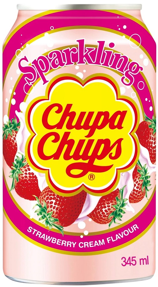 Chupa Chups Sparkling Strawberry 345ml (DPG Einwegpfand/Pfanddose) in 24er Tray
