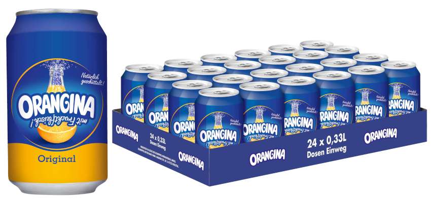 Orangina Classic Orangenfruchtsaftgetränk mit Fruchtfleisch ohne Farbstoffe 330ml Dose(DPG Einwegpfand/Pfanddose) im 24er Tray