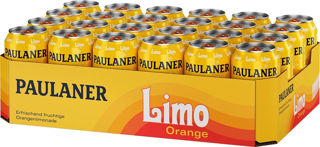 Paulaner Limo erfrischend fruchtige Orangenlimonade 330ml Dose (DPG Einwegpfand/Pfanddose) im 24er Tray