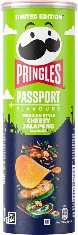 Pringles Passport Flavours Mexican Style Cheesy Jalapeño Stapelchips mit mexikanischem Käse-Jalapeño Geschmack 165g
