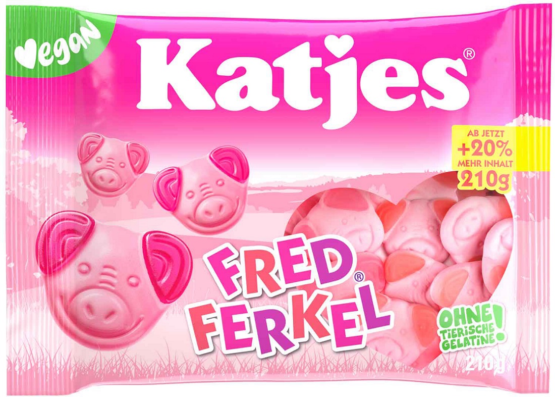 Katjes Fred Ferkel, Schaumzucker mit Fruchtgummi, mit natürlichen Aromen und Far