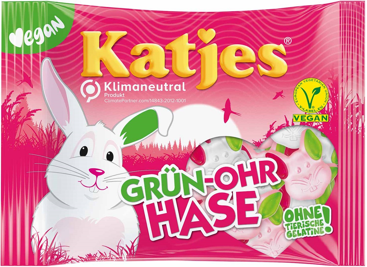 Katjes Grün-Ohr Hase Schaumzucker mit Fruchtgummi natürlichen Aromen und Farben.