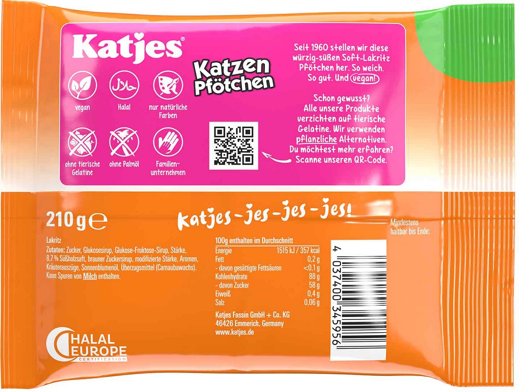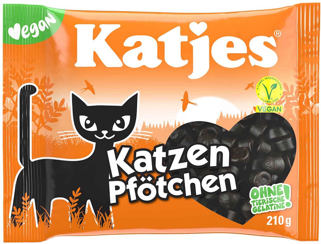 Katjes Katzen Pfötchen, würziges Softlakritz mit natürlichen Farben. Für Veganer