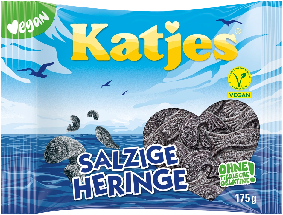 Katjes Salzige Heringe Gezuckerte Lakritz-Fische mit Salmiaksalz Vegetarier geei