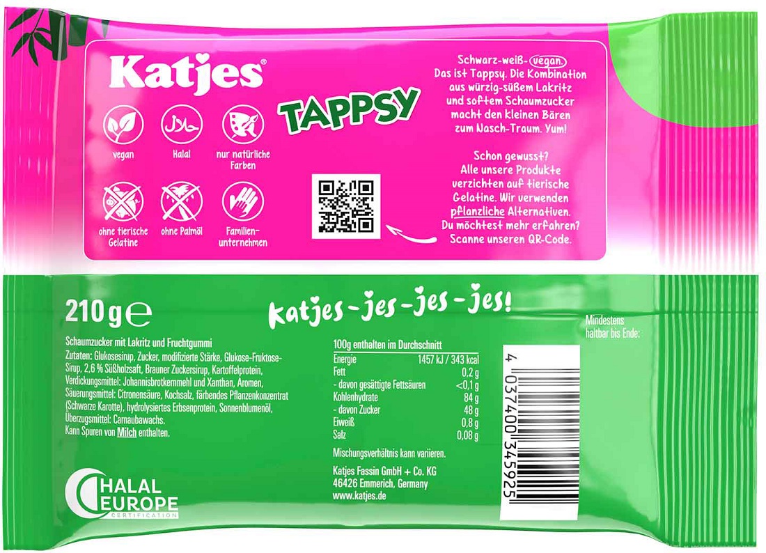 Katjes Tappsy, Schaumzucker mit Lakritz und Fruchtgummi, mit natürlichen Farben,