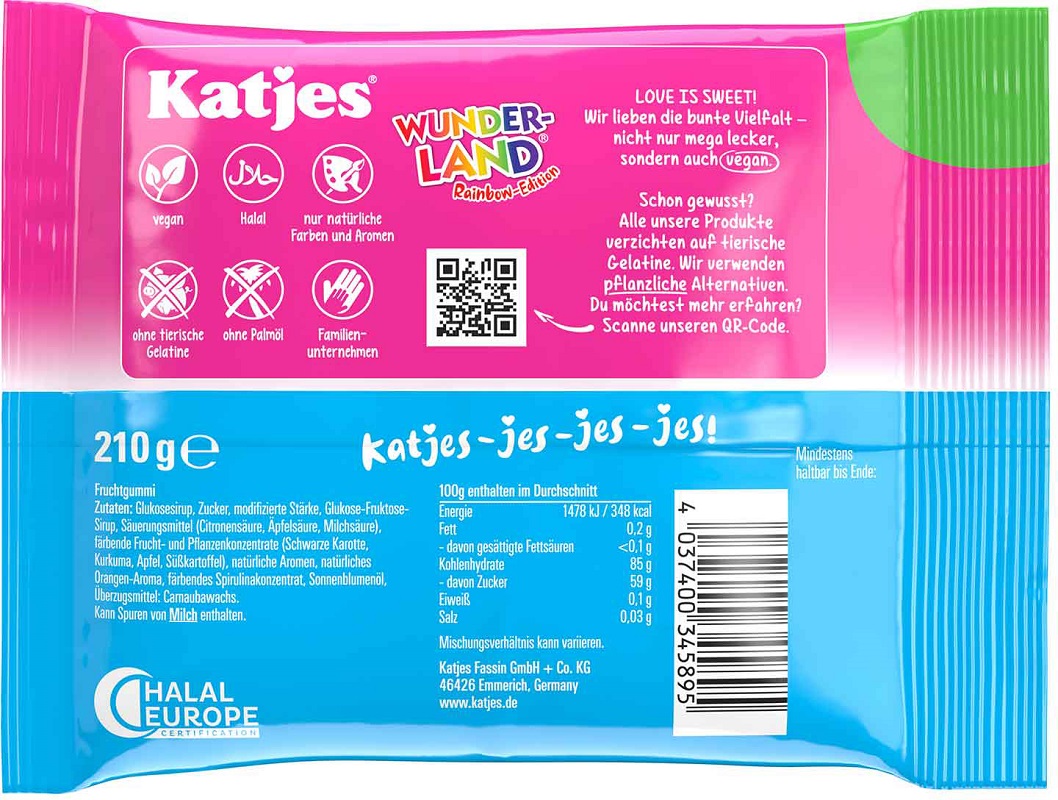 Katjes Wunderland Rainbow-Edition, Fruchtgummi. Für Veganer geeignet im 210g Beu