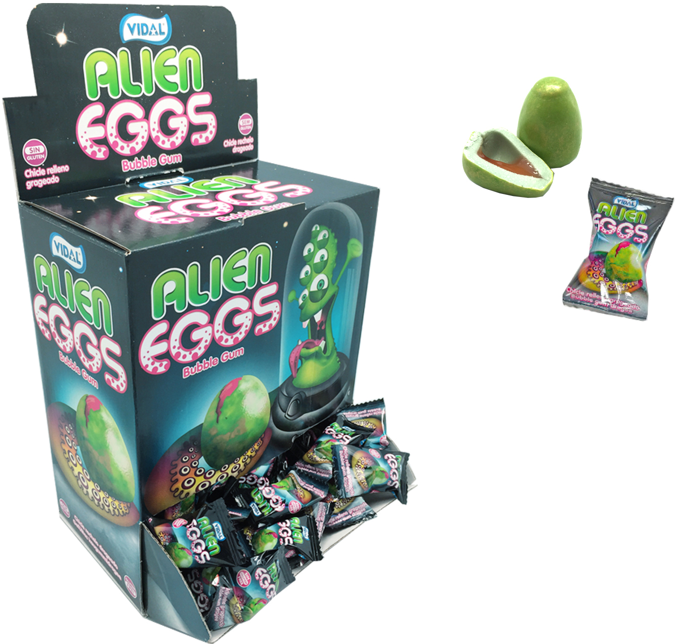 Alien Eggs Bubble Gum Glutenfreie Kaugummi Dragees in 200er T-Dsp.