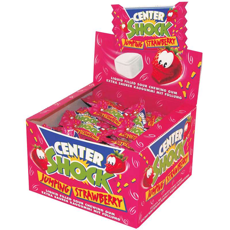 Center Shock Jumping Strawberry, Extra sauerer Kaugummi mit Füllung, 100 St. im