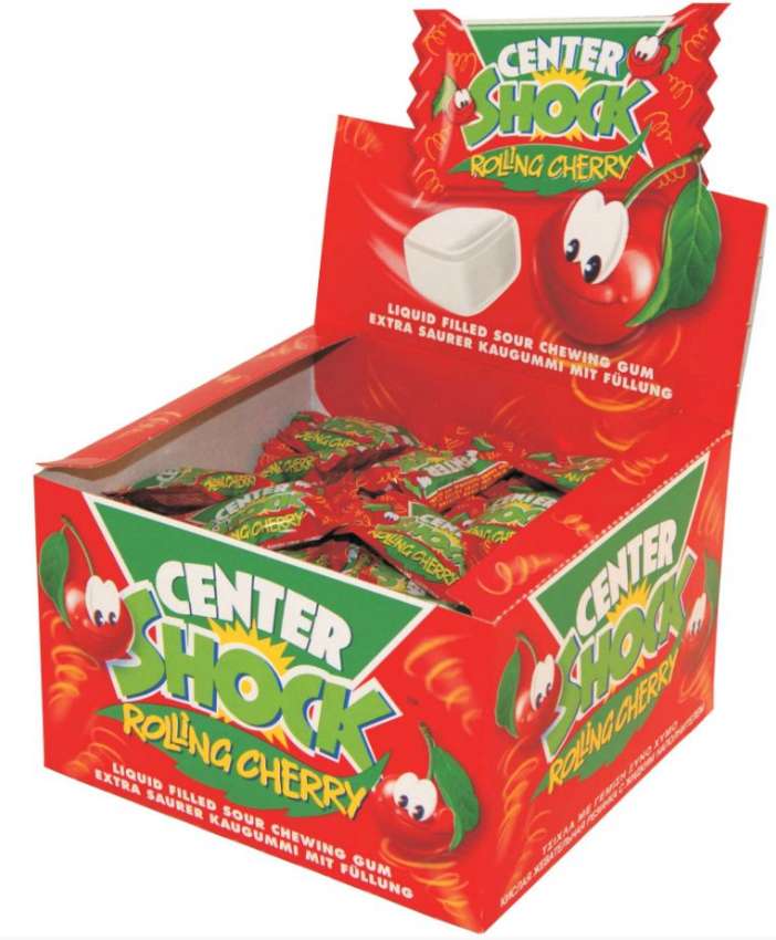 Center Shock Rolling Cherry, Extra sauerer Kaugummi mit Füllung Kirschgeschmack
