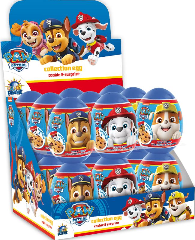 Paw Patrol Surprise Egg Überrachungs Ei mit Choc Chip Cookies & Spielzeug á 5,5g im 18er T-Dsp.