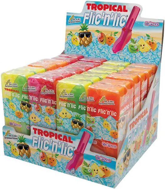 Au´some FLIC N´ LIC Tropical Lutscher 3/s (Ananas-Zitrone, Orange-Mango, Apfel-Ananas-Orange) im 24er T-Dsp.
