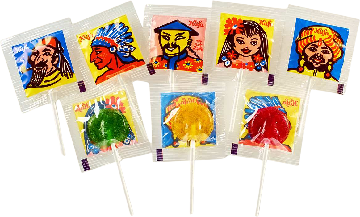 Küfa Candy Pop Frucht Lollis mit Menschen aus den 50er Jahren, 3 versch. Geschmä