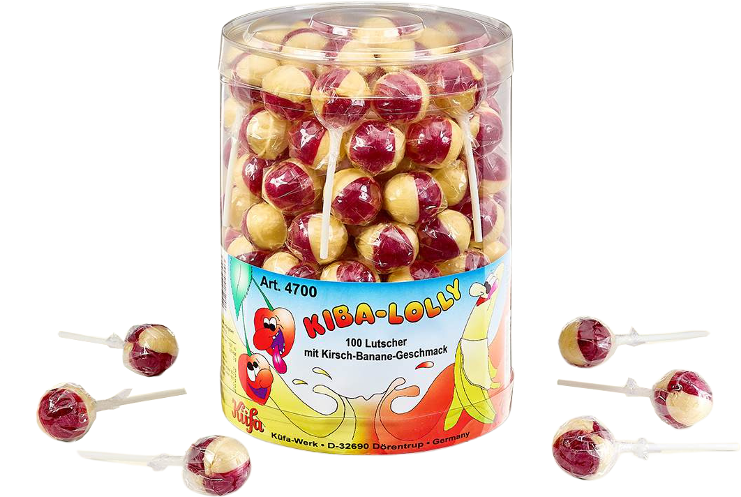 Küfa KiBa-Lolly Lutscher mit Kirsch-Banane-Geschmack in 100er Dose