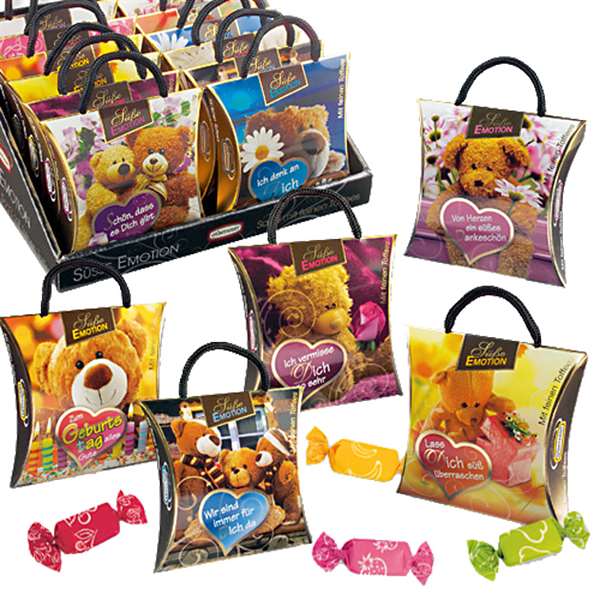 Bärchen taschen mit Sprüchen 12 motive gefüllt mit Frucht Toffees ca. 12x30x14cm
