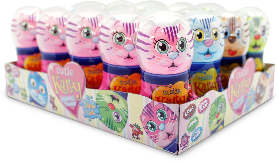 Cutie Katty Candy Licker Dip & Lick 4/s (Cola, Apfel, Himbeere, Erdbeere) in 20er T-Dsp.