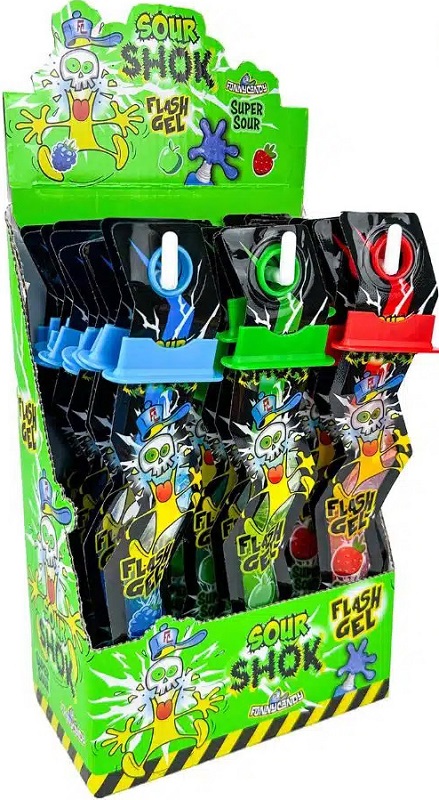 Funny Candy Sour Shok Flash Gel Super Sauer 3/s á 23g (Blaubeere, Erdbeere, Apfel) im 30er T-Dsp.