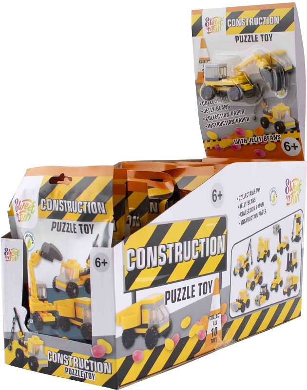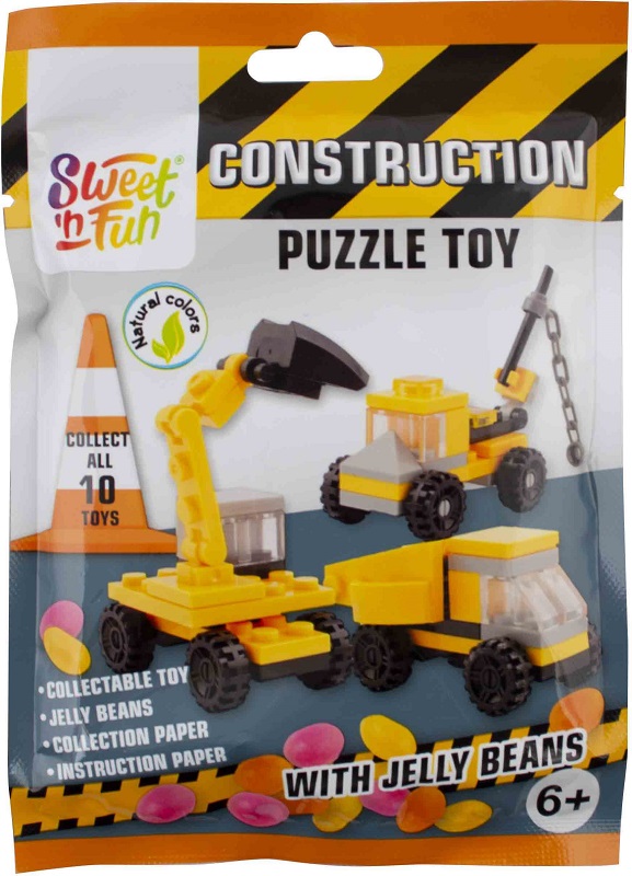 Sweet´n´Fun Baufahrzeuge Puzzle Toy & Candy á 5g inkl. Jelly Beans, Bauanleitung und Sammelkarte im 20er T-Dsp.