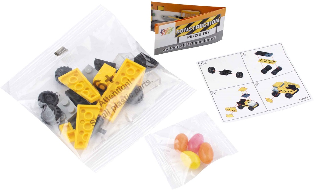 Sweet´n´Fun Baufahrzeuge Puzzle Toy & Candy á 5g inkl. Jelly Beans, Bauanleitung