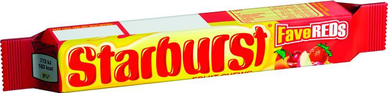 Starburst Fave-Reds Chew Bar Fruchtgummi-Stangen im 45g Pack im 24er T-Dsp.