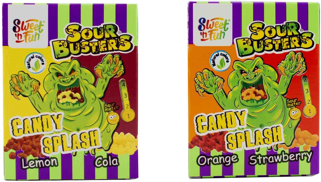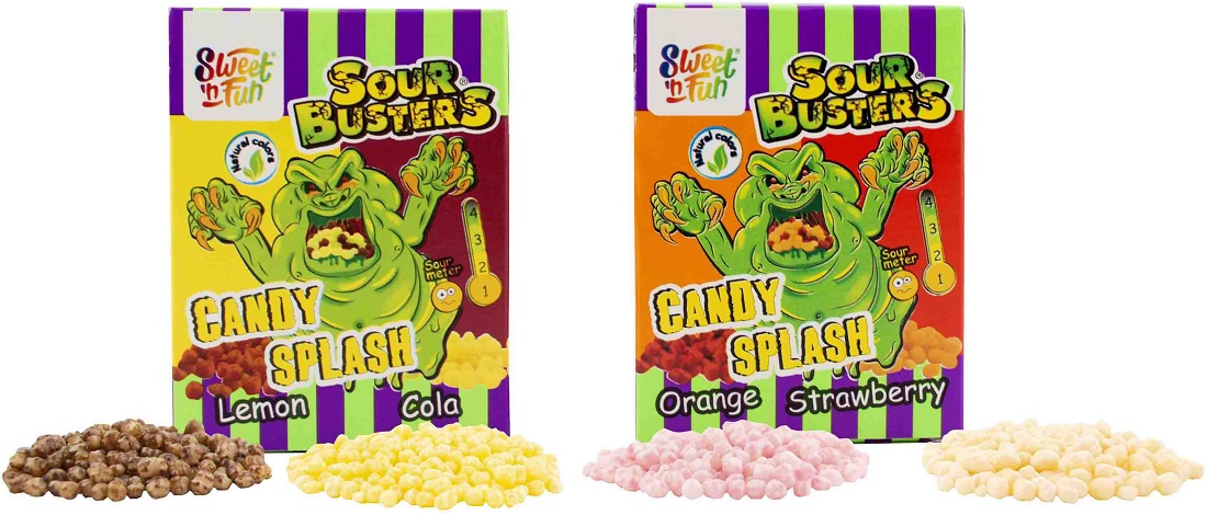 Sweet´n´Fun Sour Busters Candy Splash saure Steinchen á 45g 2/s (Lemon Cola, Ora