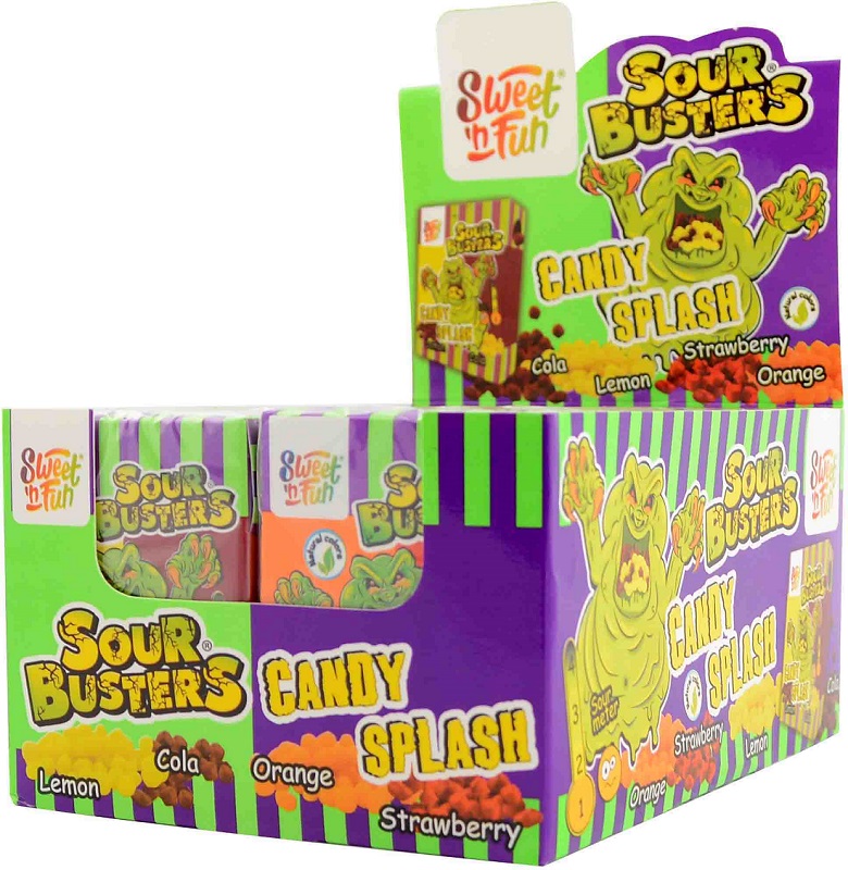 Sweet´n´Fun Sour Busters Candy Splash saure Steinchen á 45g 2/s (Lemon Cola, Orange Strawberry) im 16er T-Dsp.