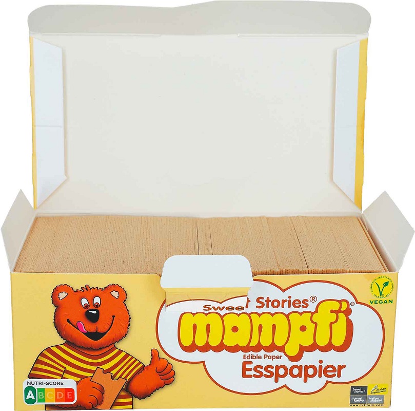 Sweet Stories® Mampfi Esspapier mit Karamell-Geschmack 200 Stk.á 10 x 7cm im T-D