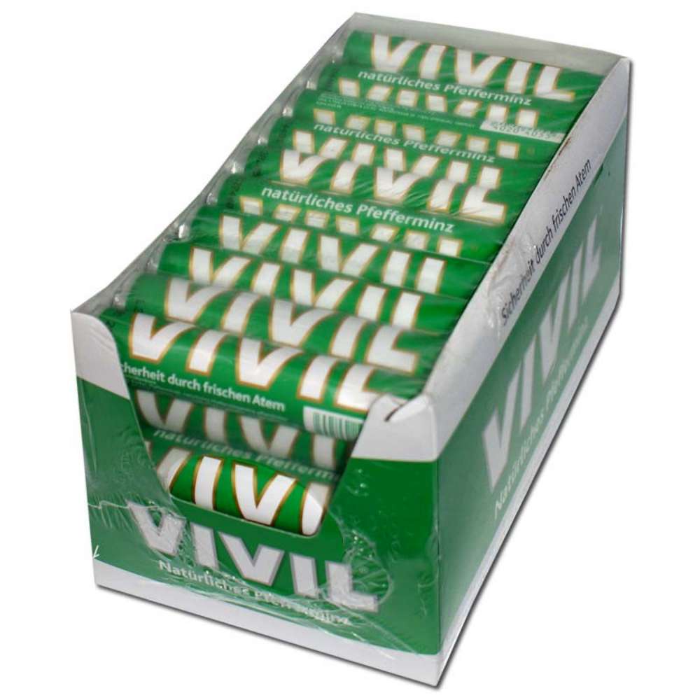 Vivil Pfefferminz Bonbons ohne zucker (grün) Rolle 28g im 30er T-Dsp.