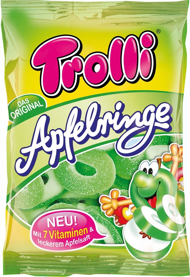 Trolli Apfelringe Weiche und saure Fruchtgummi-Ringe mit Schaumzucker und Apfelg