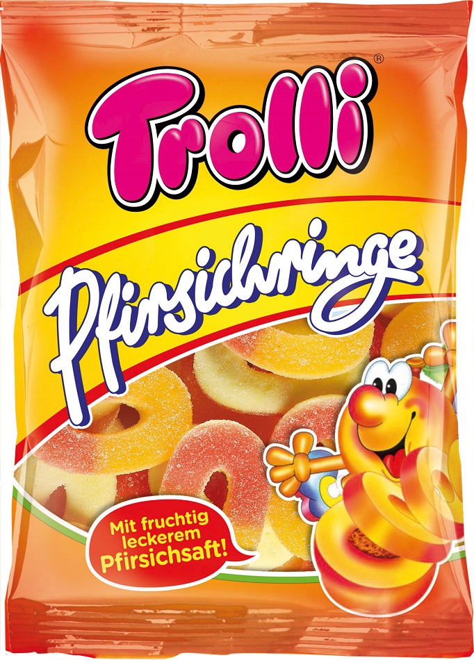 Trolli Pfirsichringe gezuckerte Fruchtgummi-Ringe mit Schaumzucker und Pfirsichs