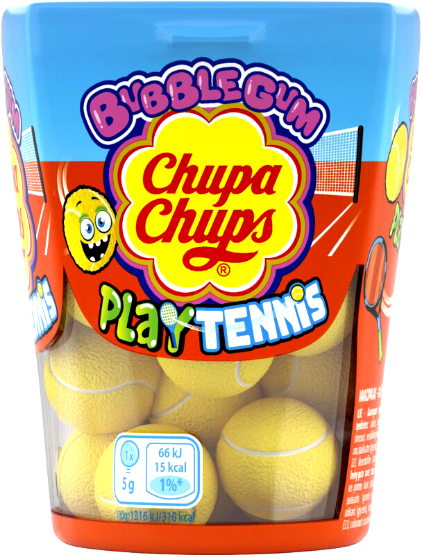 Chupa Tennis Ball Gum Play Tennis 18 Kaugummis mit flüssigem Kern und Ananasgesc