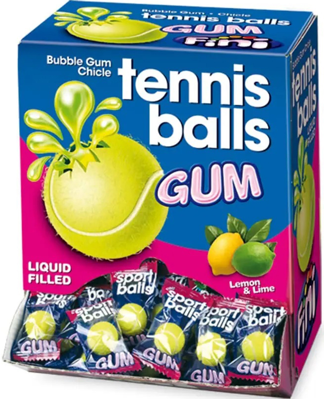 Fini TENNISBALL Bubble Gum/Kaugummi flüssige saure füllung - 200 Stück einzelpack/Box (Halal)