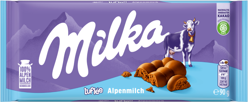Milka Luflée Schokoladen Tafel 90g lecker-luftig aus nachhaltig angebautem Kakao & 100% Alpenmilch
