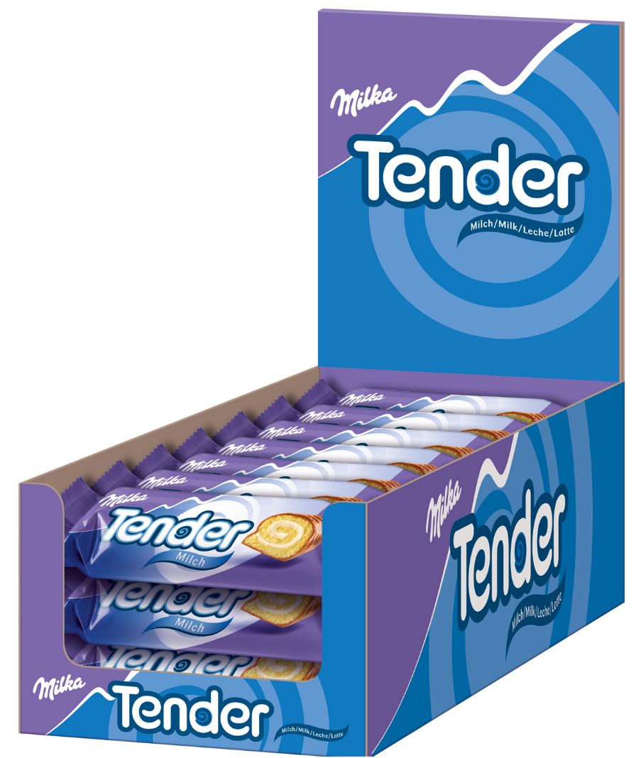 Milka Tender Milch 37g Mini-Kuchen aus heller Biskuit-Rolle mit Milchcrème-Füllung und Überzug aus Alpenmilchschokolade im 21er T-Dsp.