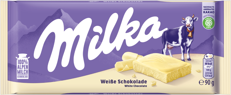 Milka Weiße Schoklade Tafel 90g aus nachhaltig angebautem Kakao & 100% Alpenmilc