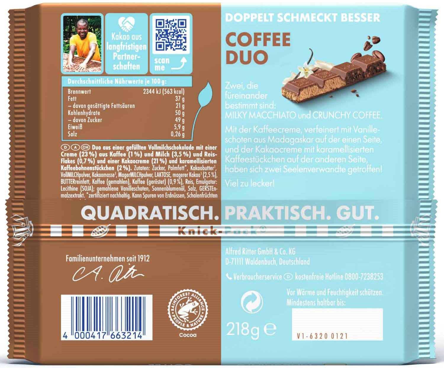 Ritter Sport Coffee Duo Vollmilchschokolade 218g