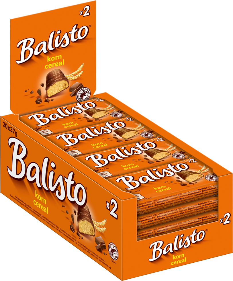 Balisto Korn-Mix Vollkornkeks-Riegeln mit Überzug aus Milchschokolade 37g im 20er T-Dsp.