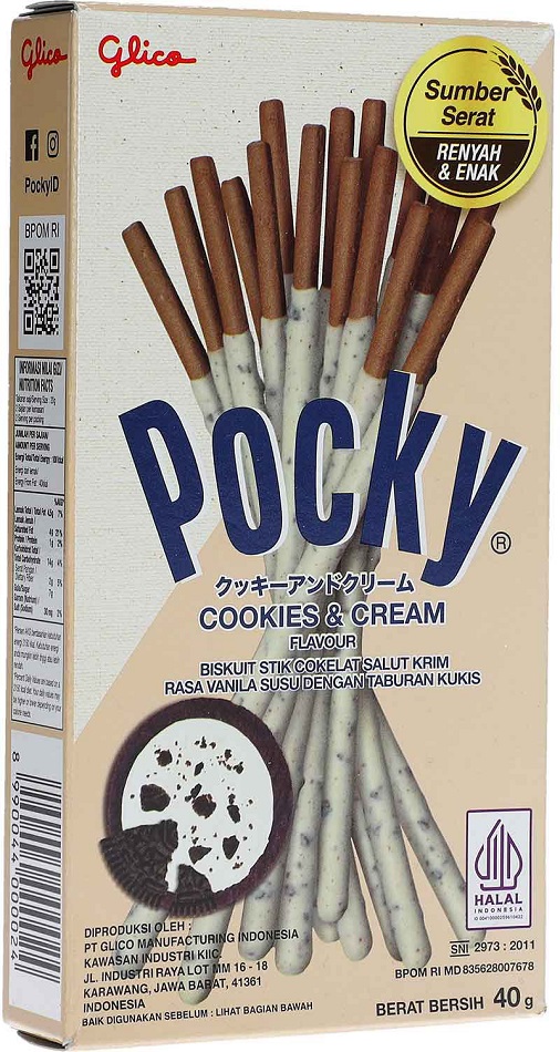 Pocky Cookies & Cream knusprige Kakaokeks-Sticks ummantelt mit leckerer Cookies & Cream Glasur in 40g Packung(Halál)