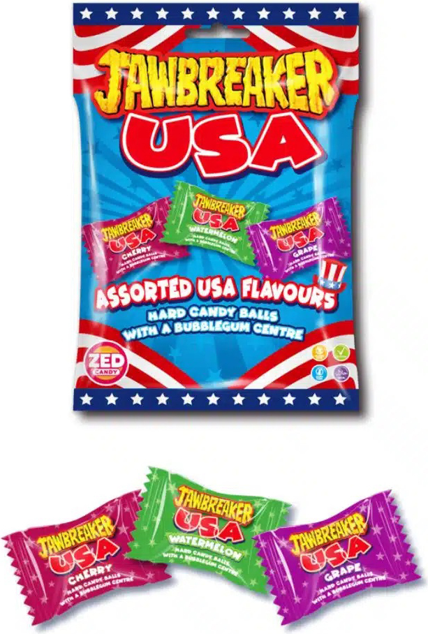 ZED Jawbreaker USA Harte Aussenhülle mit weichem Kaugummi Kern (Cherry, Watermelon, Grape) im 99g Beutel (Halal)