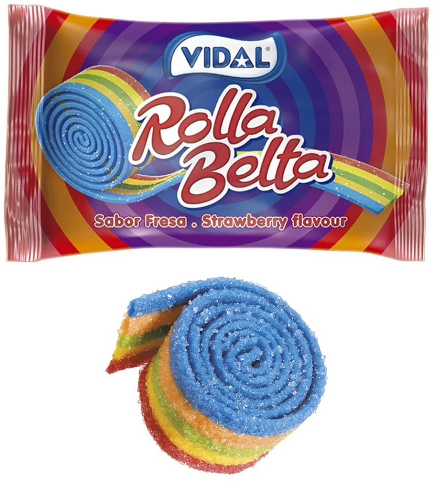 Vidal Rolla Belta Rainbow saure Fruchtgummi Bänder einzeln verpackt á 20g im 24e