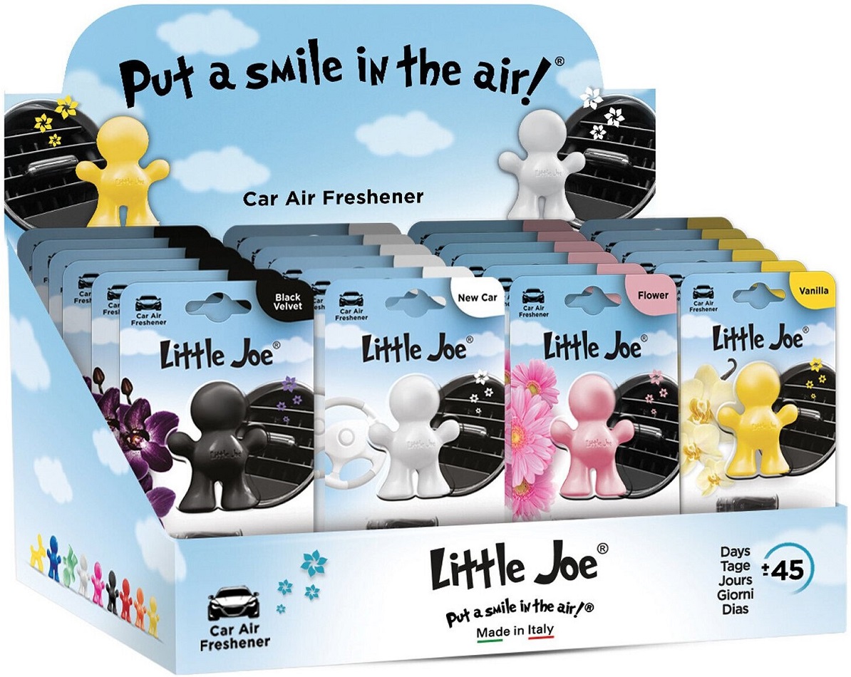Little Joe Mix Vanilla, New Car, Flower, Black VelwetLufterfrischer 45 tage duft ca.4x5x2cm in BK im 24er T-Dsp.