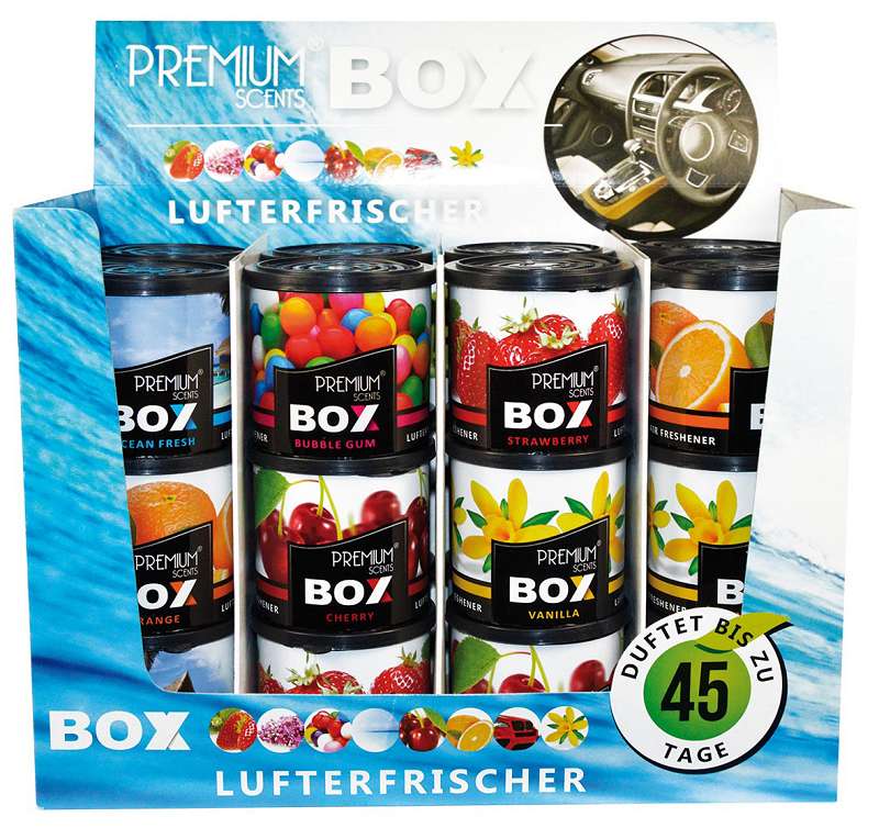 "Premium Scents Box ""NEU""Lufterfrischer 45tage 24er Dsp. Orange,Vanilla,Kirsch