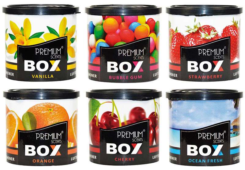 Premium Scents Box "NEU"Lufterfrischer 45tage 24er Dsp. Orange,Vanilla,Kirsche,Erdbeer,Bubble Gum,Ocean Fresch