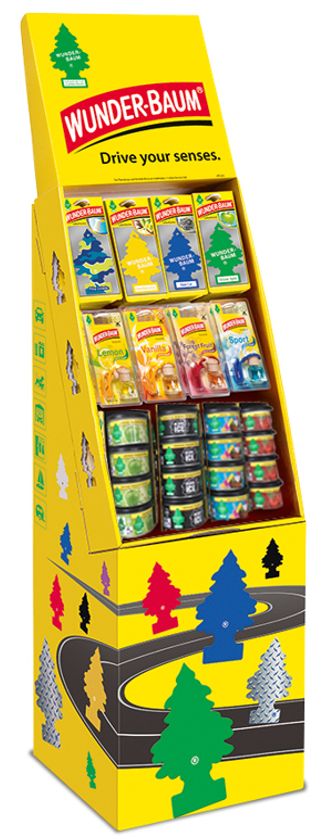 Wunder-Baum 152er Mix Bodendisplay 96xWunderbaum(Celebrate, Vanilla,New Car, Orange Juice), 16xDuftflakon(Lemon-Vanilla-Forest Fruit-Sport), 40xFiber Cam(Black Ice, Tropical, Orange Juice, Kirsche) im 152er B-Dsp."DNP Preis"
